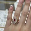 A bold and eye-catching ring with a deep center stone surrounded by shining crystals, perfect for adding charm to any outfit.