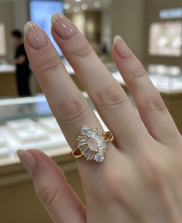 Design: Marquise-shaped stone with crystal border